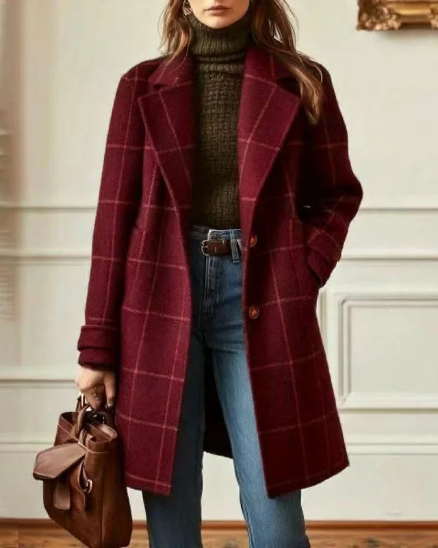 Este casaco combina o charme clássico com a sofisticação moderna. O padrão xadrez e a silhueta refinada criam um visual elegante que transita facilmente de passeios casuais a ocasiões mais formais. Confeccionado em tecido xadrez macio e respirável , oferece aquecimento e conforto confiáveis em todas as estações — uma peça essencial para os dias mais frios.